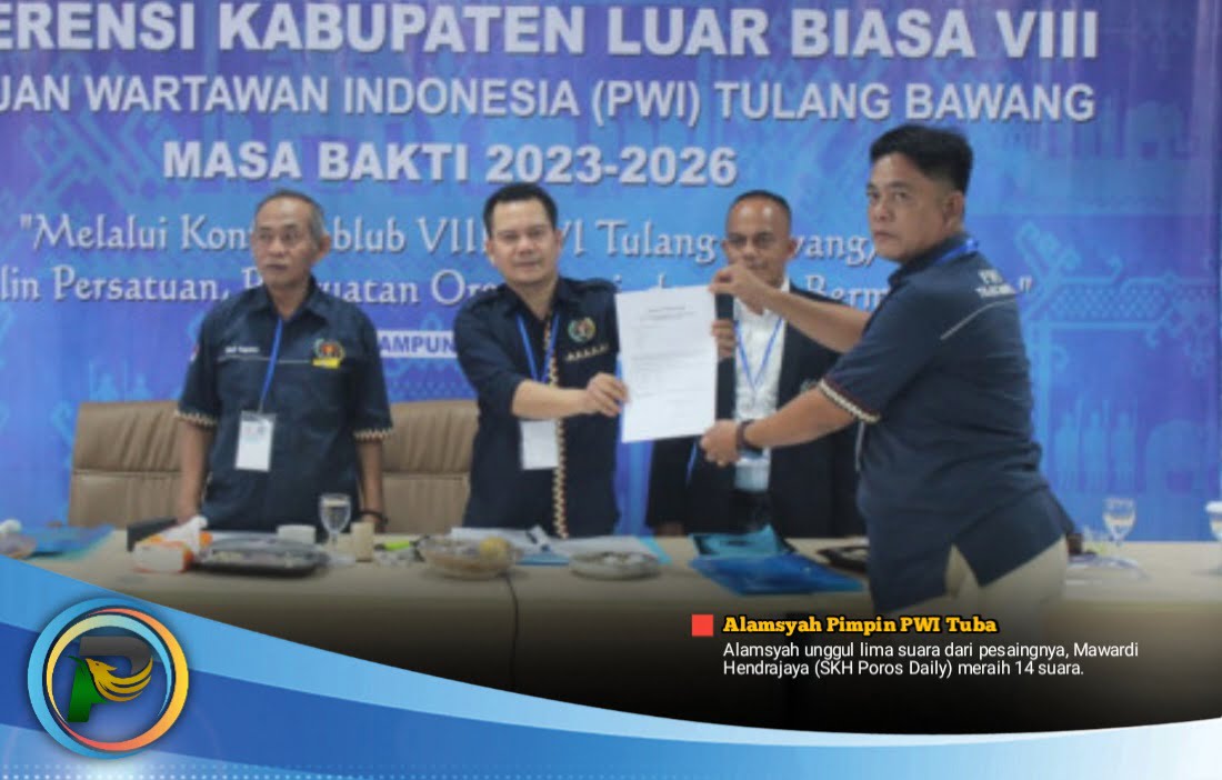 psiaceh.or.id/ – Wartawan senior Tulangbawang (Tuba) Alamsyah terpilih menjadi ketua Persatuan Wartawan Indonesia (PWI) Tulangbawang (Tuba) periode 2023-2026 dalam Konferensi Kabupaten Luar Biasa (Konferkablub) VIII di Balai Wartawan H. Solfian Akhmad, Bandarlampung, Kamis (15/06/2023).